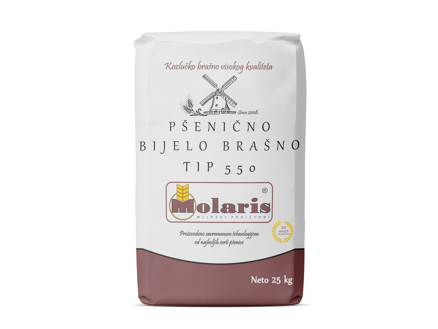 Molaris pšenično brašno tip 550 je proizvod dobijen iz centralnih dijelova endosperma i većeg
